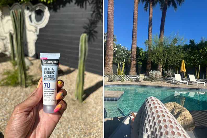 I swear the sun is different in Palm Springs. Something about the desert heat is just mesmerizing (see: everyone’s golden-hour pictures). But it’s also one of those great natural wonders that you have to enjoy responsibly. I’m talking SPF. I slathered myself with Neutrogena Ultra Sheer Dry Touch Sunscreen with SPF 70 ($10, originally $13). The brand was giving it out like candy at the Marriott Bonvoy activation on the Coachella grounds (and Marriott Bonvoy members or American Express card members can pick it up on Sunday during Weekend Two).