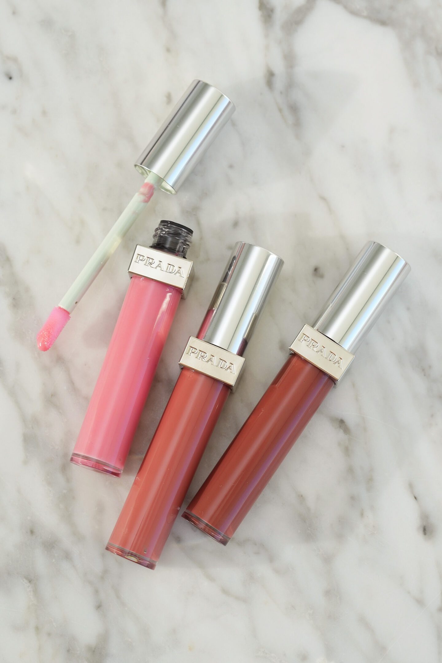 These give the lips that effortless lips but luxe look. I like the look and feel of these. I think they will also look lovely if layered over a lipliner or any of the Prada lipsticks.