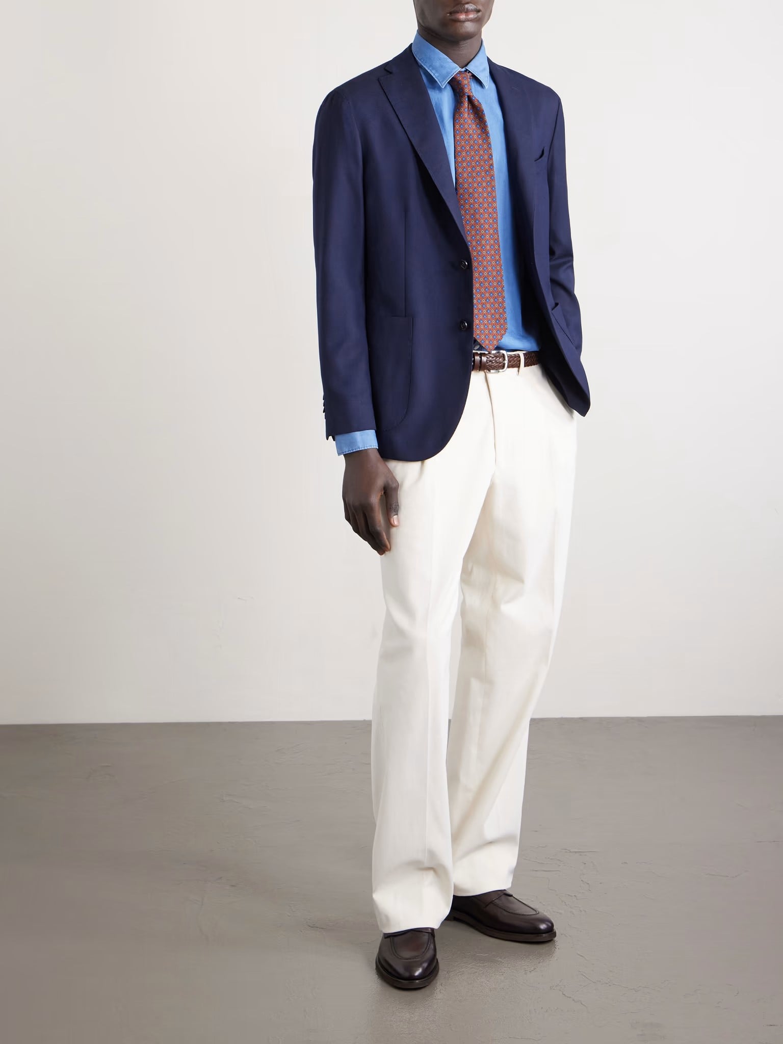 A piece like the Boglioli K-Jacket blazer is designed specifically for this kind of dressing, with a relaxed construction that moves naturally instead of sitting stiff on the body. When paired with something like NN07’s Mylo straight-leg trousers, the result feels balanced, controlled, and easy to wear across different settings.