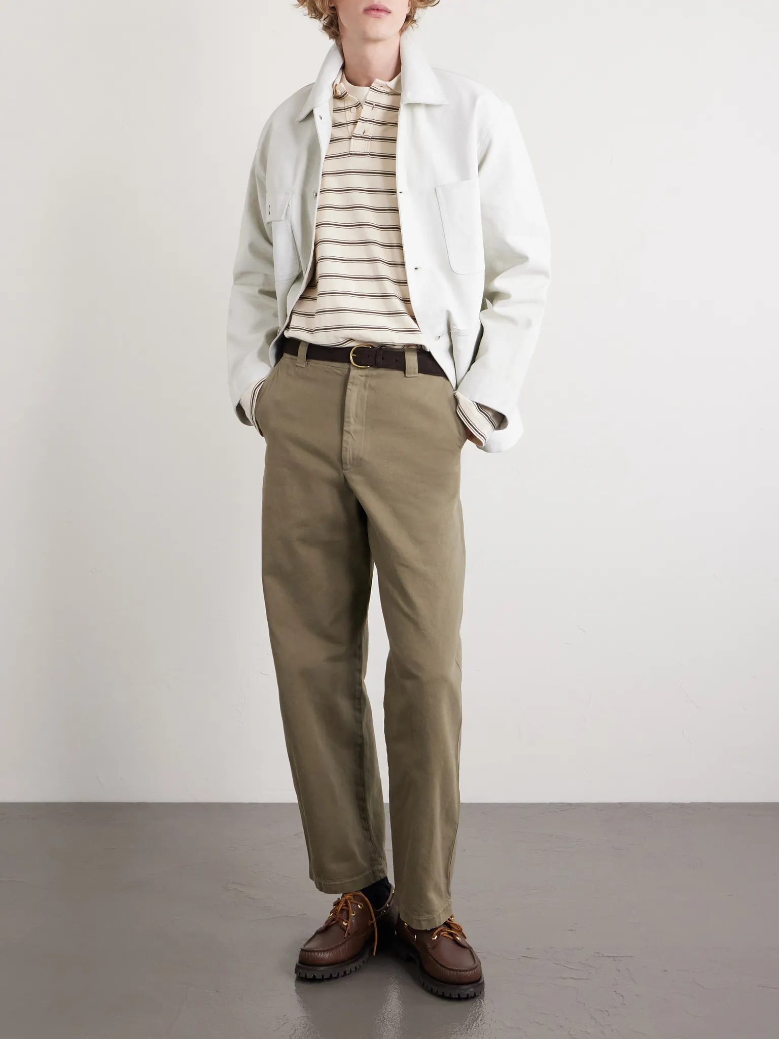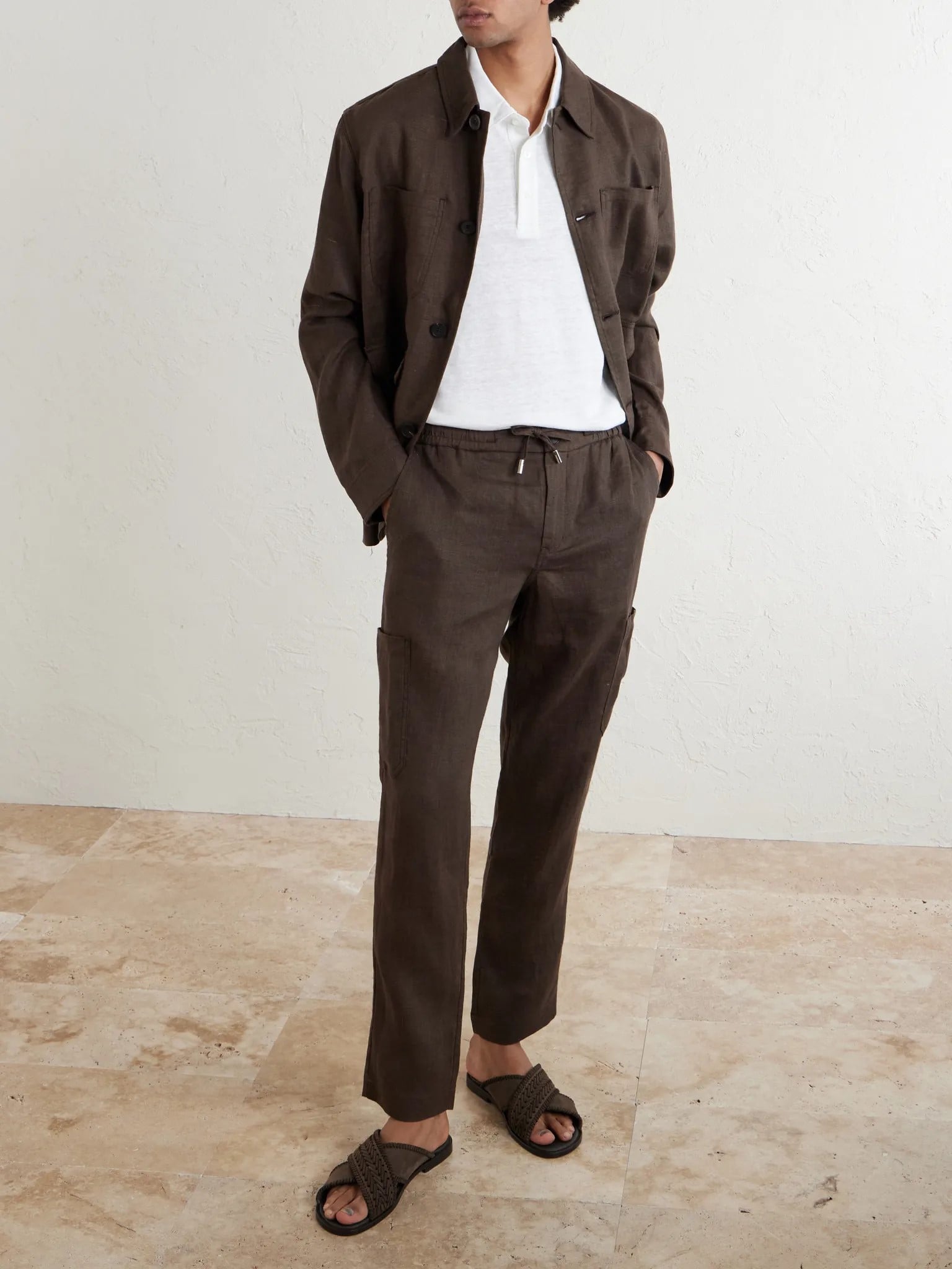 A piece like the MR P. linen overshirt brings in that workwear influence through its pockets and shape, while trousers from A.P.C. or Carhartt WIP keep the look grounded and practical. The combination feels solid, masculine, and modern without tipping into anything too styled.