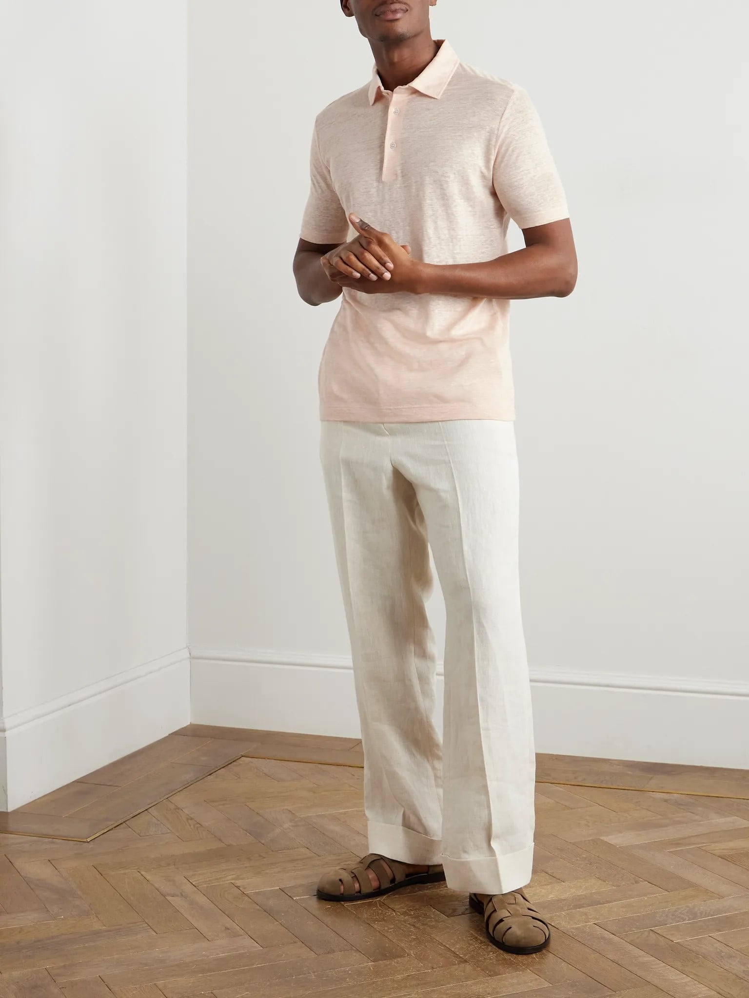 Pieces like a Loro Piana linen polo paired with neutral trousers create depth without relying on contrast. The colours sit within the same palette, but the textures do the work, which is what gives the outfit its presence.