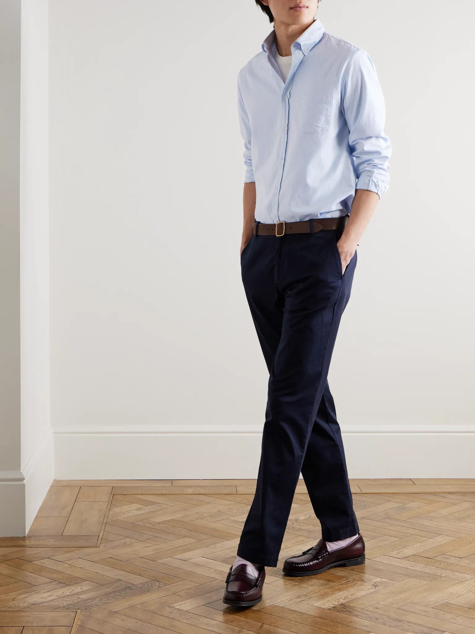 A Sunspel Oxford shirt provides a clean, structured base, while a straight-leg chino keeps the silhouette sharp without feeling restrictive. Finished with a pair of suede loafers, the result is an outfit that works in almost every situation.