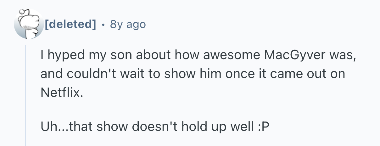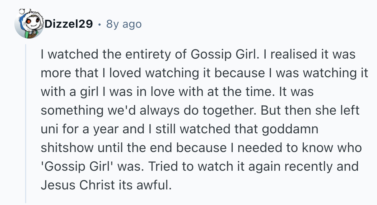 That’s why user dax812 asked r/AskReddit, “What TV show did you love while watching, but realize it was garbage once you looked back on it?”