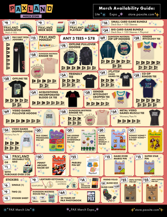 With PAX East now fully underway, the Official PAX Store – the gift shop, in theme park parlance – is ready for visitors.