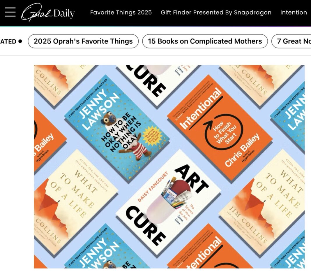 - HOW TO BE OKAY made Oprah’s list of 10 Books to Help You Make Changes That Stick in 2026. This is especially lovely considering so many of the books in this category are serious books written by doctors and licensed professionals and my book has a picture of a crocheted bears head blowing off and I can’t figure out how to number things correctly. (See number 3.)